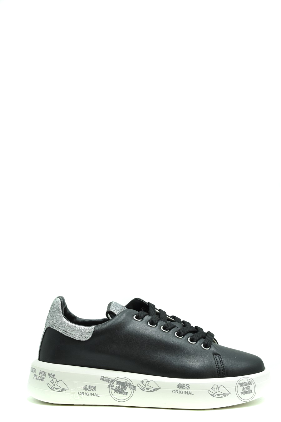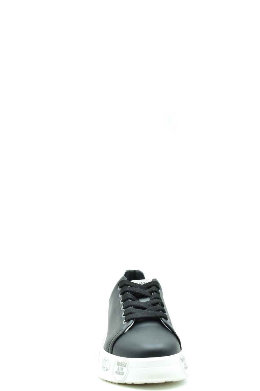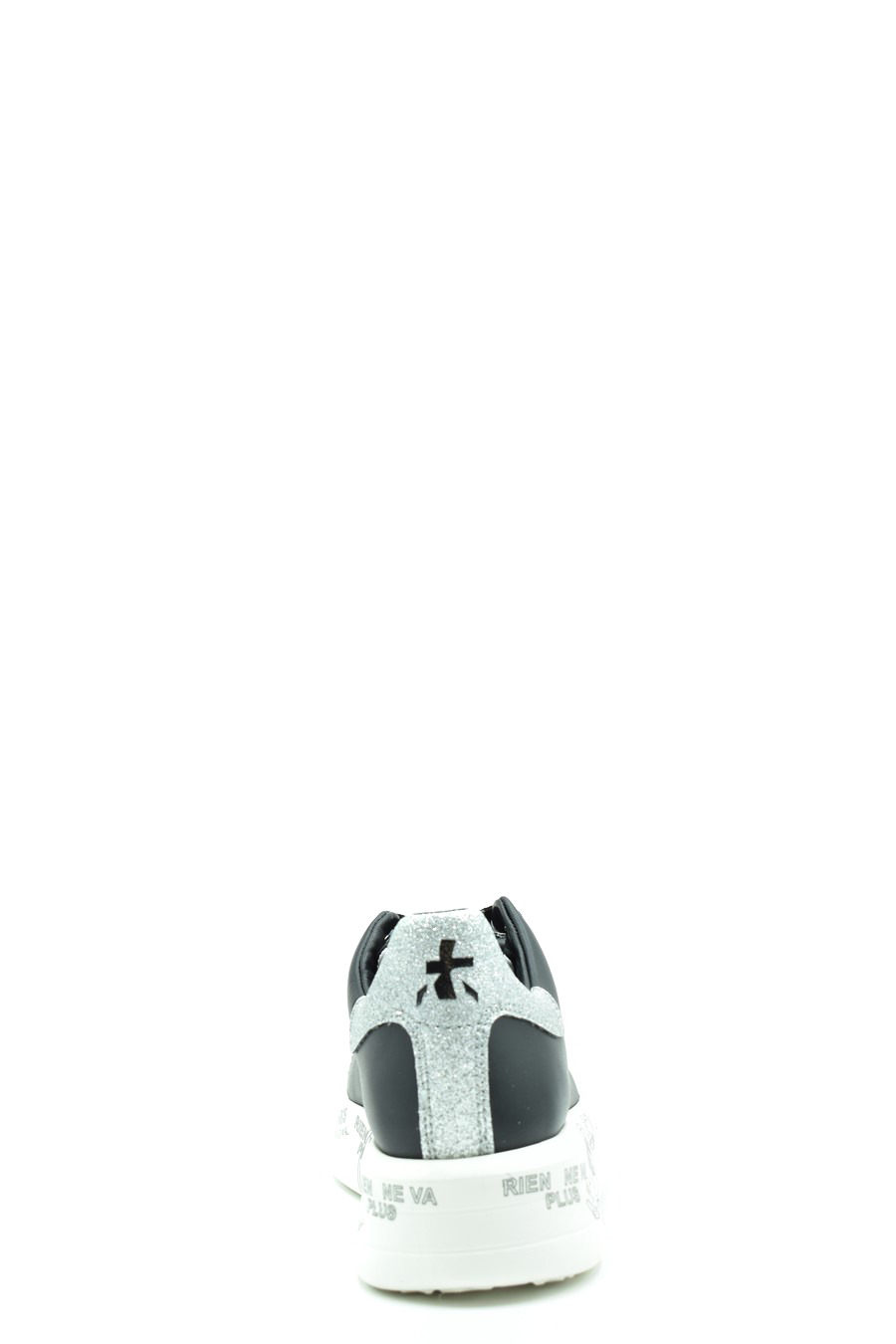 black/silver sneakers from Premiata featuring logo patch at the tongue, round toe, front lace fastening, flat rubber sole