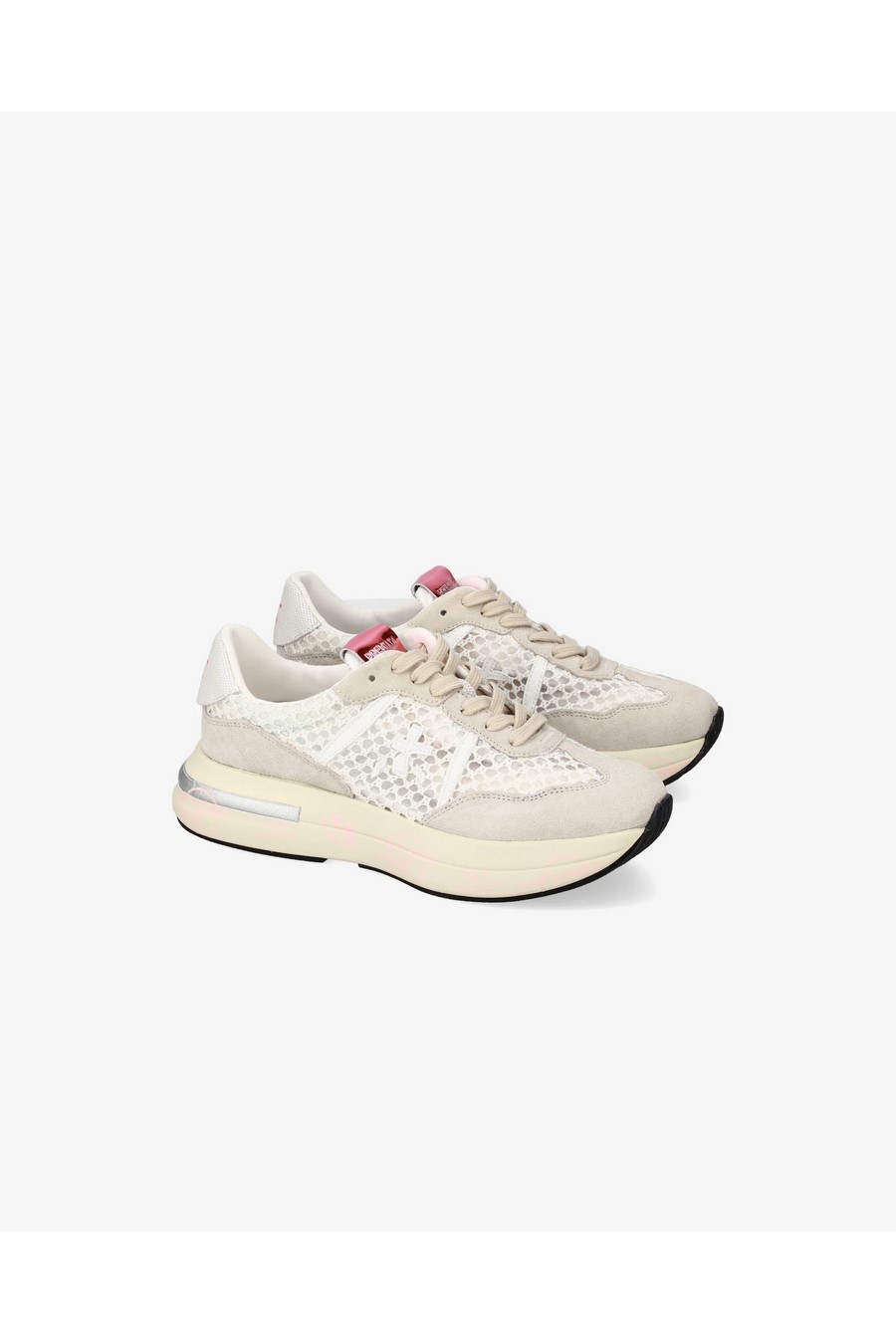 CASSIE trainer characterised by the lightness and breathability of the perforated textured fabric and the soft suede details that make its casual spirit glam. The bottom enhances the look by slimming the silhouette.