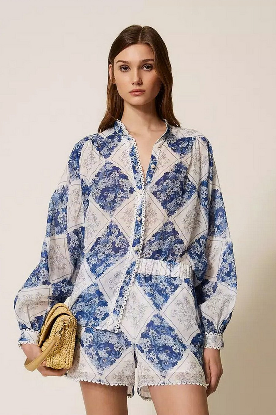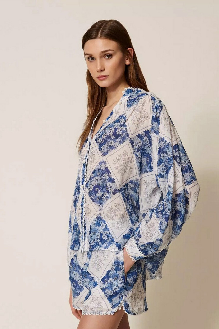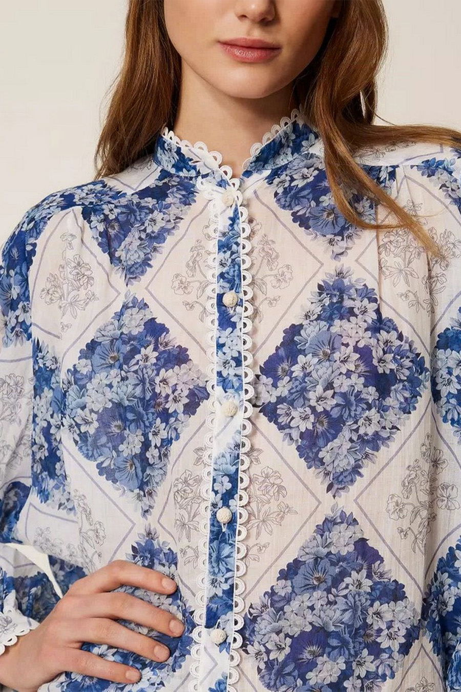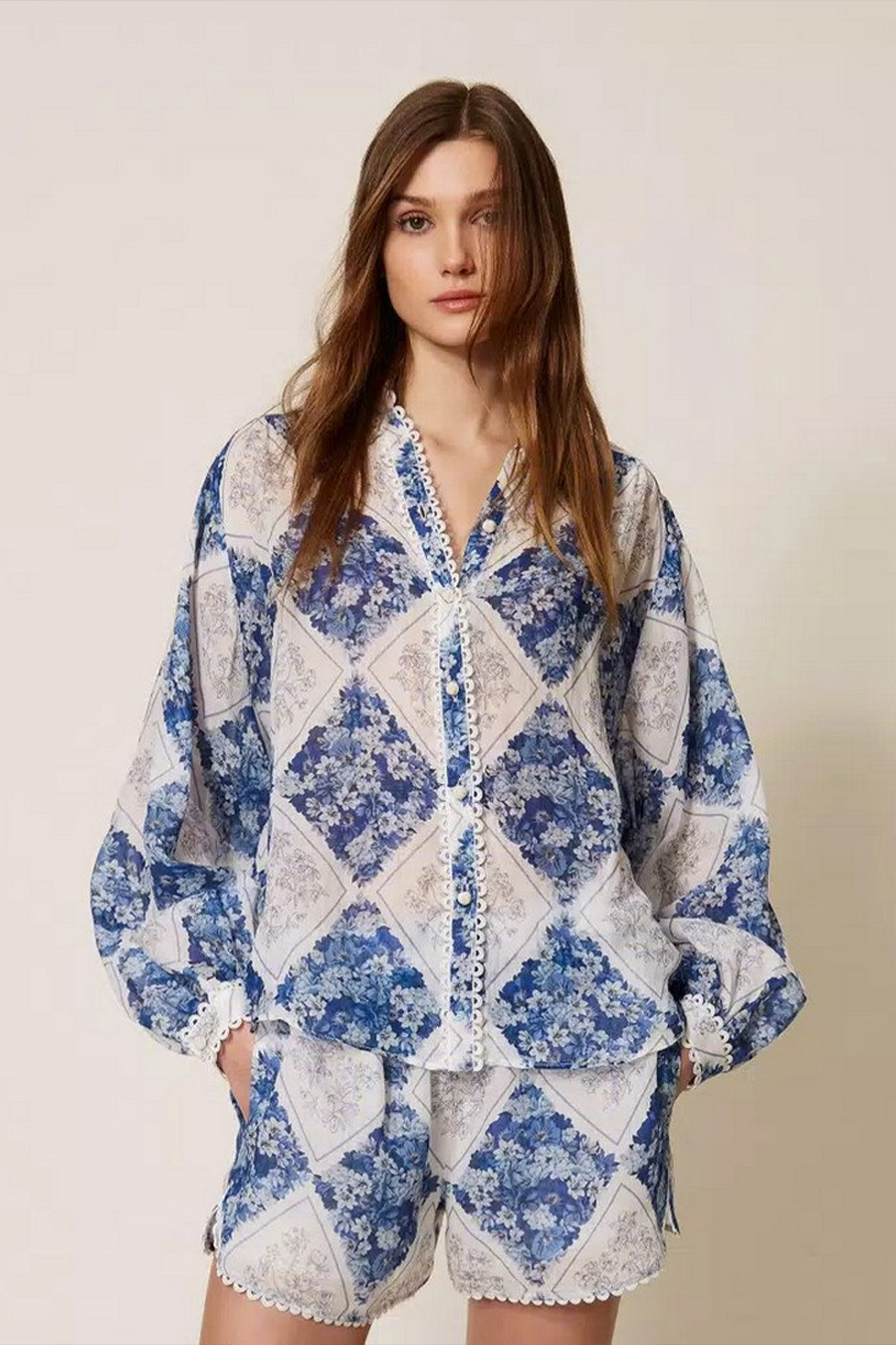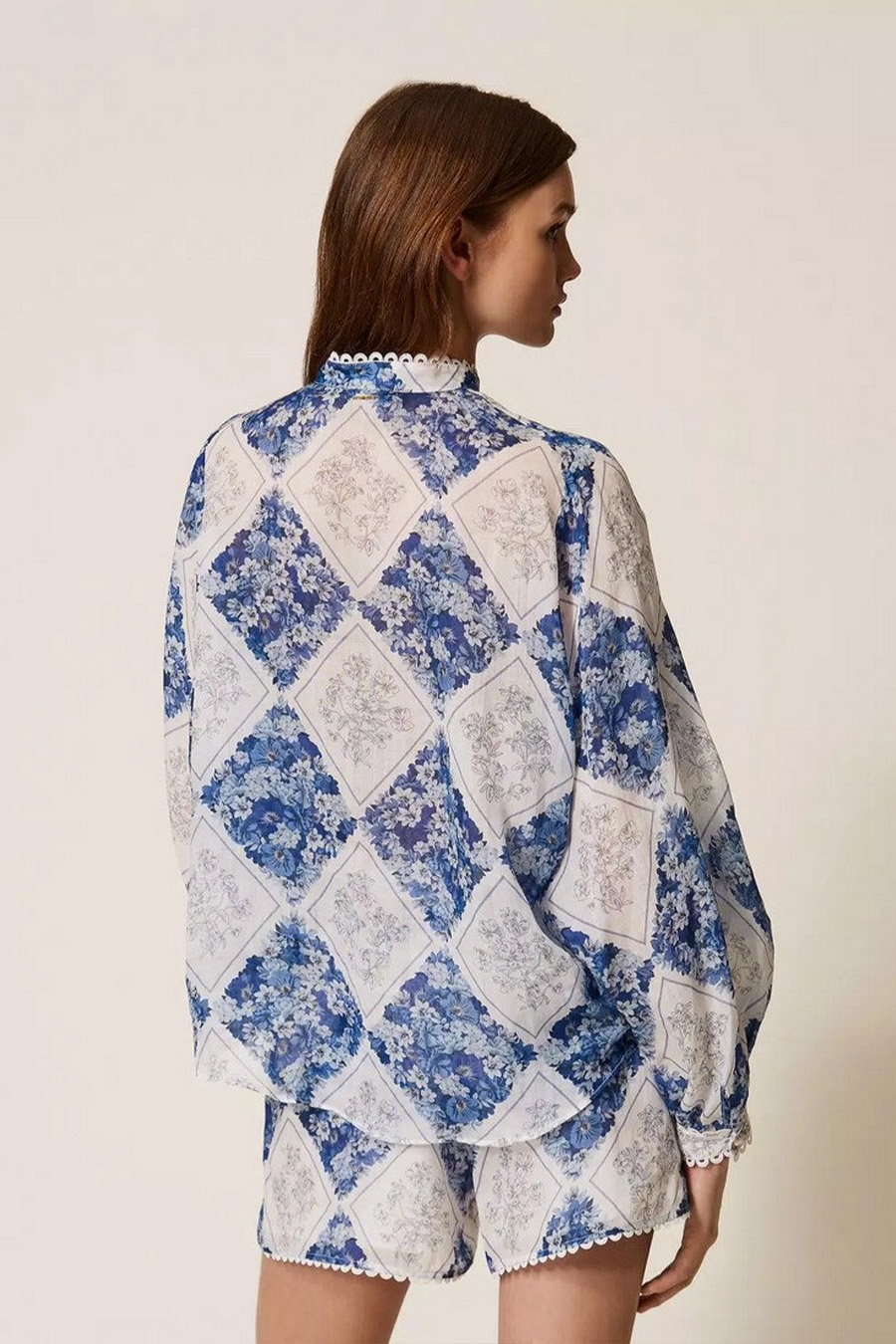 Twinset shirt in ramie with a floral diamond print.