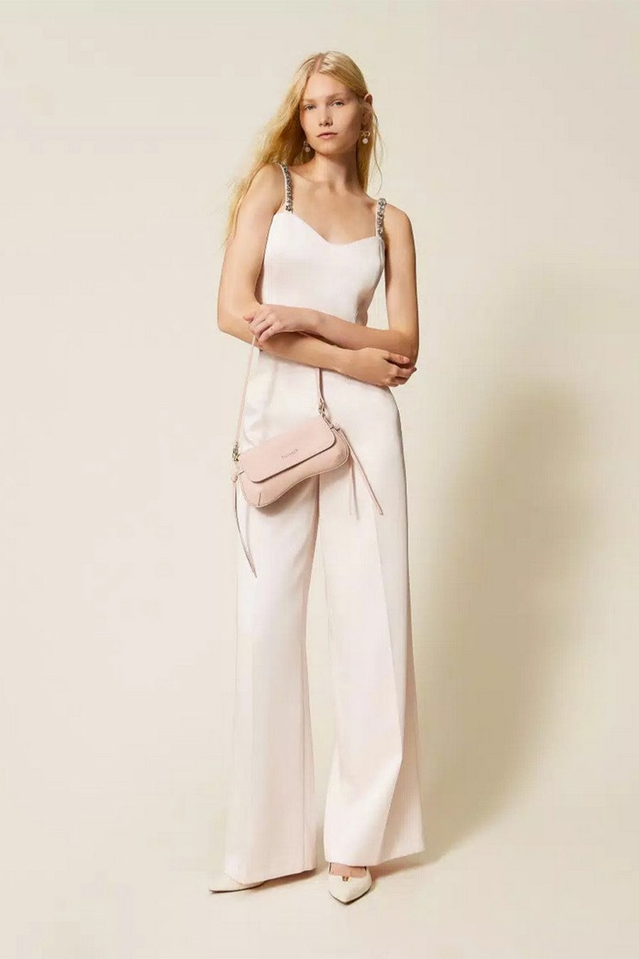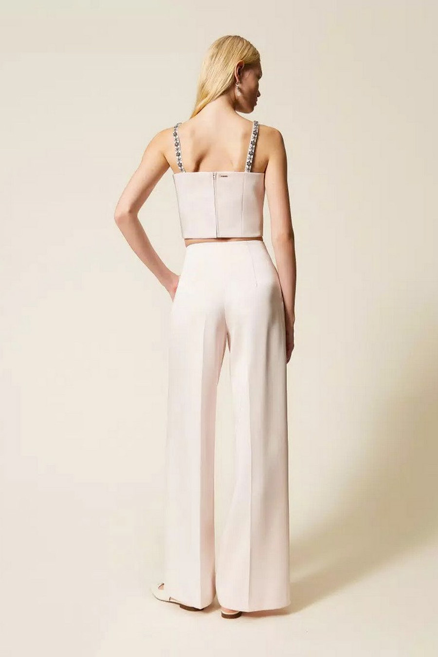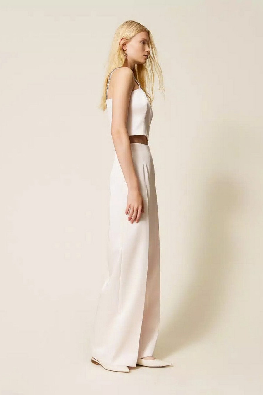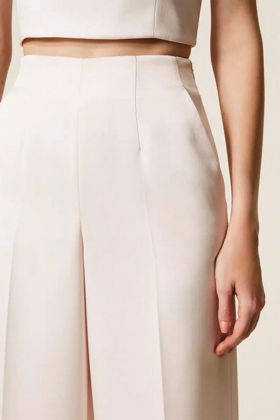 Twinset duchesse palazzo trousers with a pressed crease, side zip fastening, side pockets and a palazzo cut.